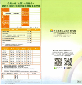 (4)公寓大廈共用部分、約定公寓大廈共用部分與其附屬設施設備點交表(一式三份) 【(民)表四】