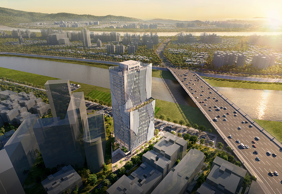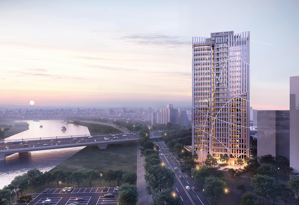由日本建築大師丹下憲孝,攜手台灣建築師廖錦盈,以純白格柵語彙、百米量體尺度,勾勒出貼合水岸風景的企業新象。打造1,088坪壯闊基地,80至239坪彈性規劃,容納企業壯志藍圖。